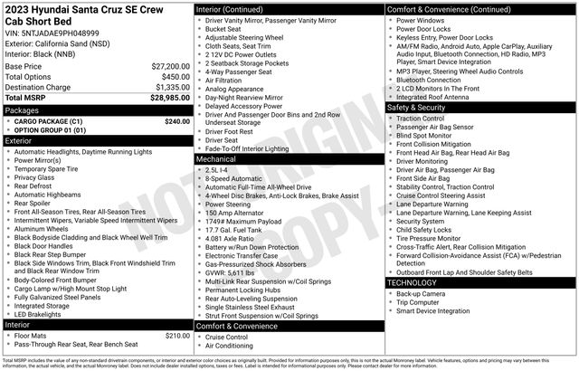 2023 Hyundai Santa Cruz SE California Sand 4D Crew Cab SE 2.5L I4 8-Speed Automatic with SHIFTRONIC AWD