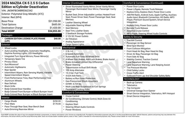 2024 Mazda CX-5 2.5 S Carbon Edition Polymetal Gray Metallic 4D Sport Utility 2.5 S Carbon Edition 2.5L I4 DOHC 16V LEV3 SULEV30 187hp 6-Speed Automatic AWD