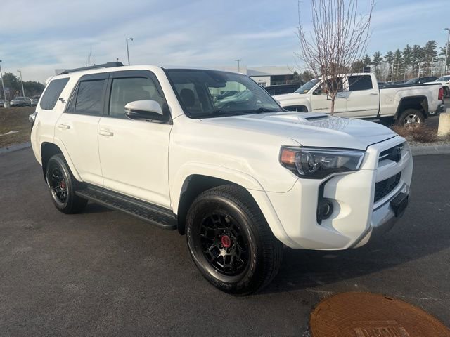 Odometer is 7786 miles below market average!4WD, Black/Graphite Artificial Leather.Thank you for shopping with Key GMC of Rochester, part of the Key Auto Group Family of Dealerships and home to our Exclusive Key Care Vehicle Protection Program offered on every New and Pre-Owned Vehicle. Ask a Key Team Member today how Key Care can protect your investment for years to come.We believe there is more to buying a vehicle than worrying about the price. For that reason, Key Auto has simplified that process for our customers. When we price a vehicle, we take the following into consideration: 1) market conditions, 2) what the area dealers are selling them for, 3) NADA retail value. This way, when you leave a Key Auto Dealership, you're confident you've received the absolute best deal.CARFAX One-Owner. Clean CARFAX.2024 Toyota 4Runner TRD Off-Road Premium 4D Sport Utility White TRD Off-Road Premium 4.0L V6 DOHC 24V 5-Speed with ECT 4WDKey GMC Of Rochester is proud to present you with another True Market Priced Pre-Owned Vehicle. This 2024 Toyota 4Runner TRD Off-Road Premium is loaded with the following Factory Options: 4WD and Black/Graphite Artificial Leather 4WD, Black/Graphite Artificial Leather, 3.727 Axle Ratio, 4-Wheel Disc Brakes, 8 Speakers, ABS brakes, Air Conditioning, Alloy wheels, AM/FM radio: SiriusXM, Anti-whiplash front head restraints, Apple CarPlay/Android Auto, Auto High-beam Headlights, Auto-dimming Rear-View mirror, Black Roof Rails, Brake assist, Bumpers: body-color, Compass, Driver door bin, Driver vanity mirror, Dual front impact airbags, Dual front side impact airbags, Electronic Stability Control, Emergency communication system: Safety Connect (1-year trial), Exterior Parking Camera Rear, Front anti-roll bar, Front Bucket Seats, Front Center Armrest, Front fog lights, Front reading lights, Front wheel independent suspension, Garage Door Opener, Garage door transmitter: HomeLink, Heated door mirrors, Heated Front Bucket Seats, Heated front seats, Heated Outside Rear-View Mirrors, Heated steering wheel, Illuminated entry, Knee airbag, Leather Shift Knob, Low tire pressure warning, Navigation System, Occupant sensing airbag, Outside temperature display, Overhead airbag, Overhead console, Panic alarm, Passenger door bin, Passenger vanity mirror, Power door mirrors, Power driver seat, Power passenger seat, Power steering, Power windows, Radio: Premium Audio, Rear anti-roll bar, Rear seat center armrest, Rear window defroster, Rear window wiper, Remote keyless entry, Security system, SofTex Seat Trim, Speed control, Speed-sensing steering, Split folding rear seat, Spoiler, Steering wheel mounted audio controls, Tachometer, Telescoping steering wheel, Tilt steering wheel, Traction control, Trip computer, Turn signal indicator mirrors, Variably intermittent wipers, and Wheels: 17 Unique 7-Spoke Off-Road Alloy!!